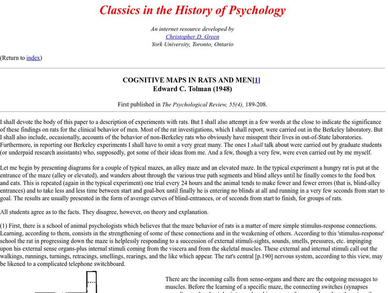 Classics in the History of Psychology: Cognitive Maps in Rats and Men