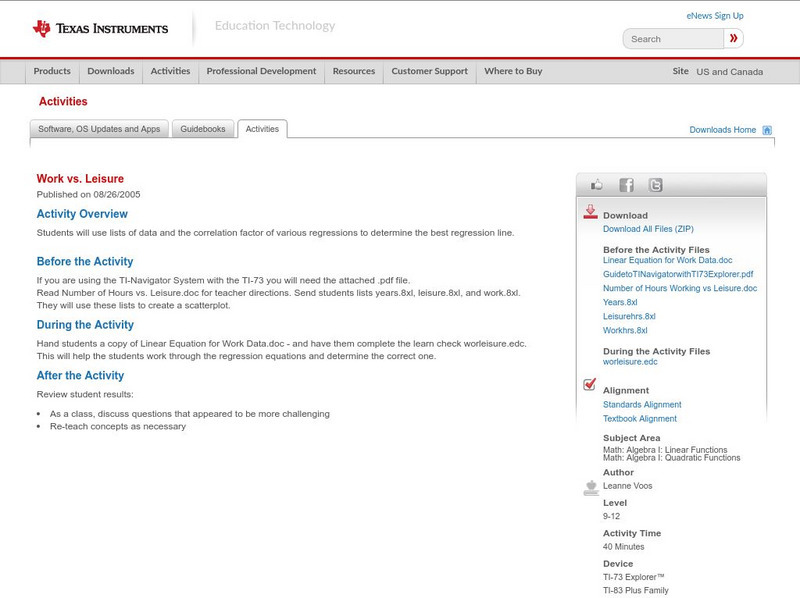 Texas Instruments: Using Cbr and Ti Navigator to Create a Regression Equation