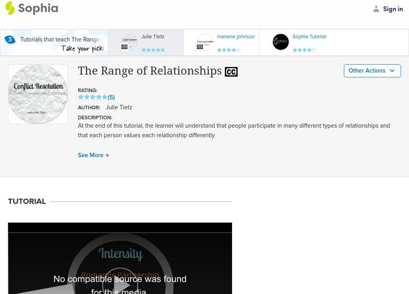 At the end of this tutorial, the learner will understand that people participate in many different types of relationships and that each person values each relationship differently. It is 1 of 3 in the series titled "The Range of...