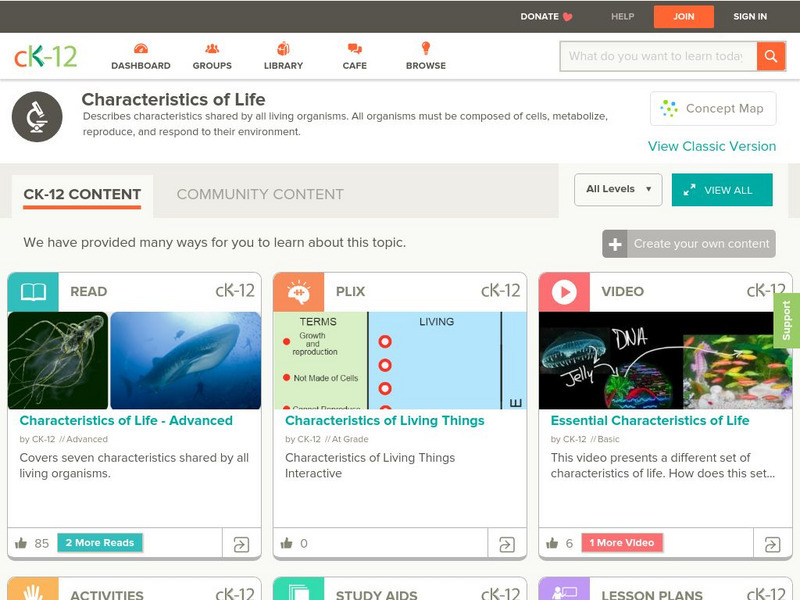 [Free Registration/Login may be required to access all resource tools.] Videos, texts, activities, and assessments about the factors that characterize living things.