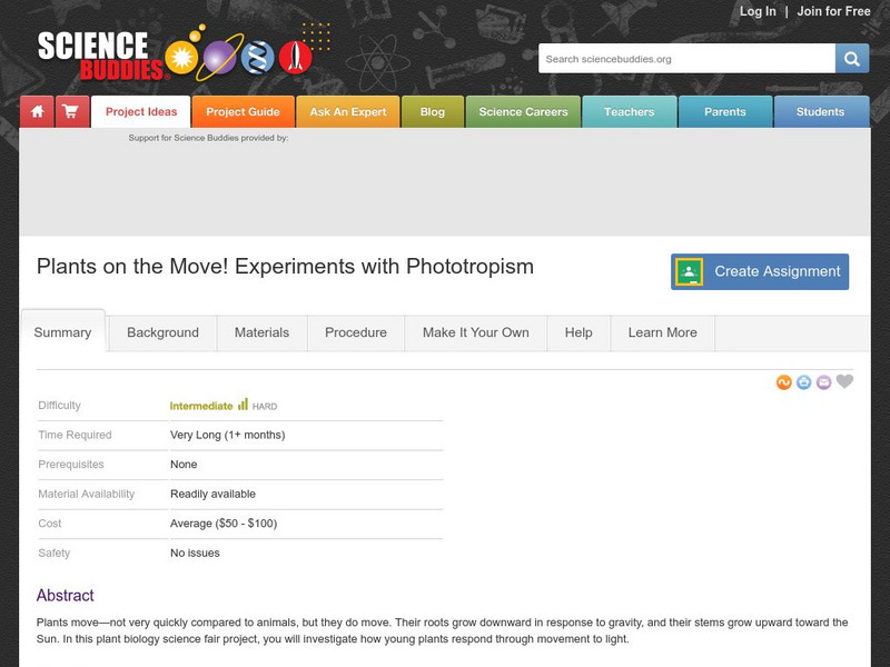 A plant biology science fair project exploring how various levels of light affect plant growth. The Science Buddies project ideas are set up consistently beginning with an abstract, objective, and introduction, followed by a section on...