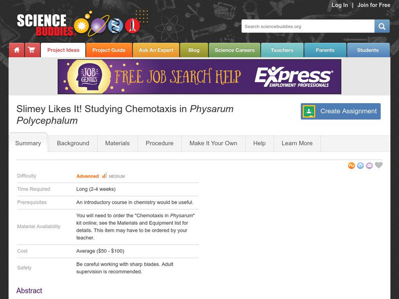 Science Buddies: Slimey Likes It! Studying Chemotaxis in Physarum Polycephalum