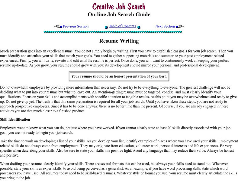 Stand out from the crowd! Your resume will likely be one of many under consideration. This online guide will help you build a resume employers will want to see. Go step by step or skip to the section that interests you.
