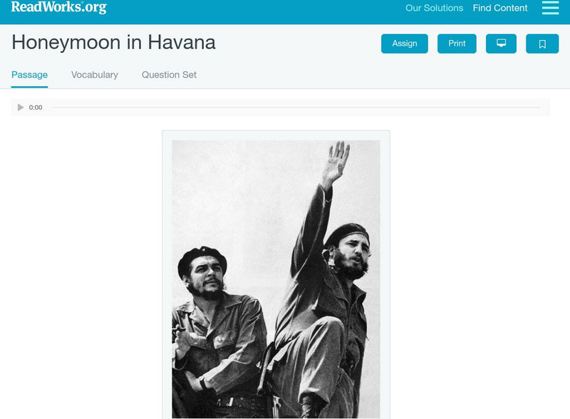 [Free Registration/Login Required] An interview with Monica Rossi who was traveling to Cuba during Castro's revolt in 1959. A question sheet is available to help students build skills in reading comprehension.