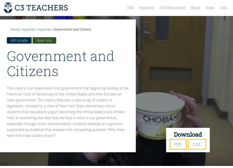 A learning module on state government. It includes several supporting questions accompanied by formative tasks and source materials, followed by a summative performance task. Students learn how an elementary class was responsible for...