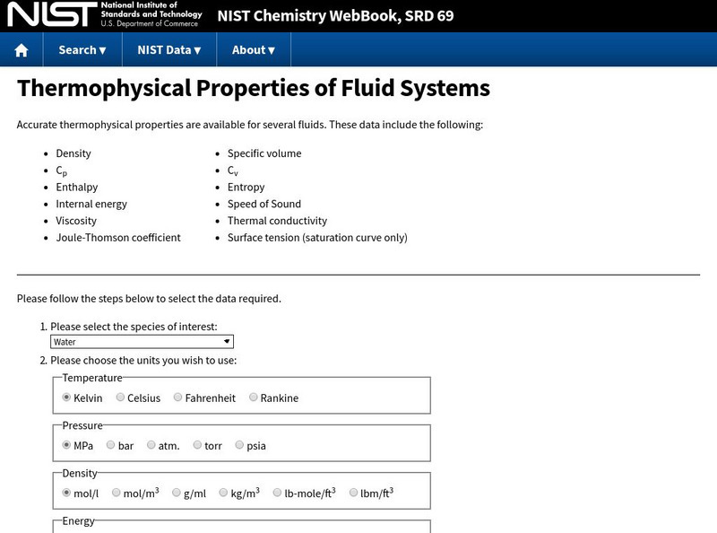 At this site, the student can find out thermophysical properties of different fluids and gases.