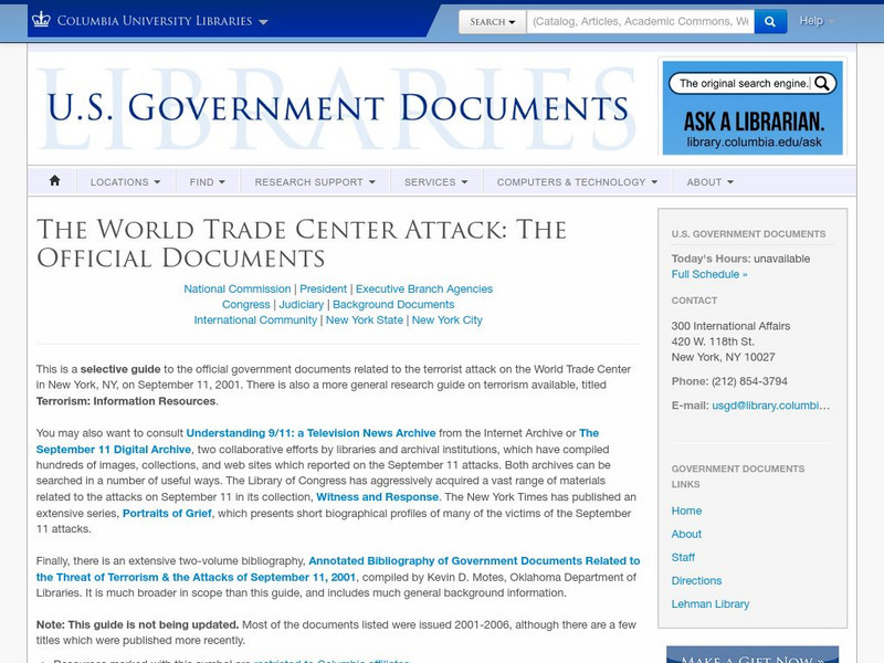 An ambitious compilation of government documents surrounding the attack on the World Trade Center and September 11, 2001, in general.