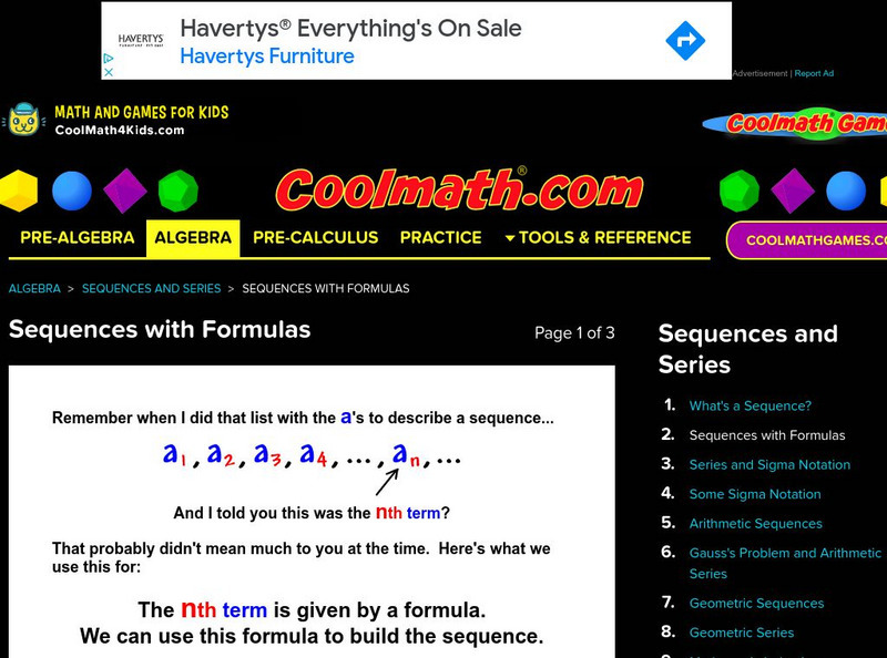 Hotmath provides 20 practice problems relating to sequences and series. Each of the practice problems include a step-by-step guide for solving.