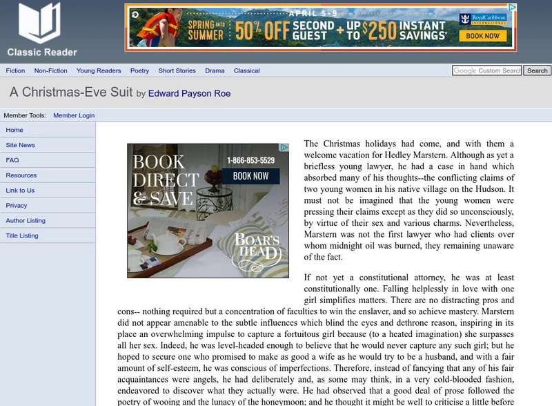 Read the short story "A Christmas-Eve Suit" by Edward Payson Roe about a young lawyer who is deciding which woman should be his bride.