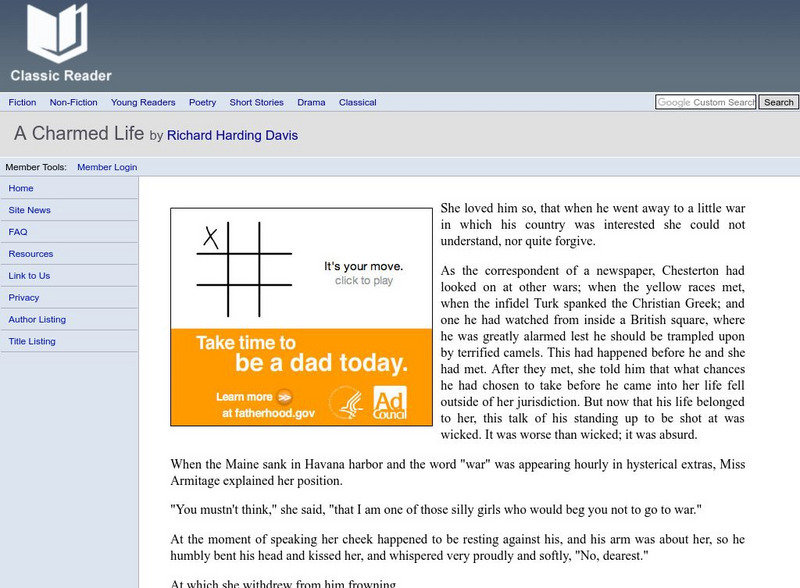 Read the short story "A Charmed Life" by Richard Harding Davis about the dangers faced by a war correspondent during the Spanish American War.