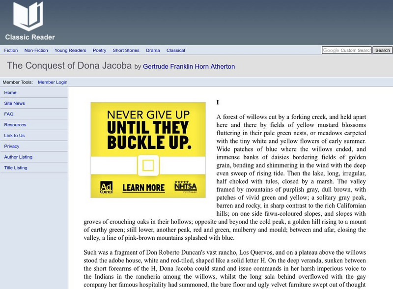 Classic Reader: The Conquest of Dona Jacoba by Gertrude Franklin Horn Atherton