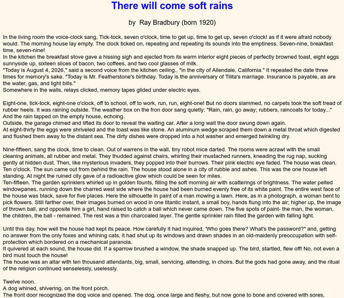The complete text of the short story "There Will Come Soft Rains" by Ray Bradbury.