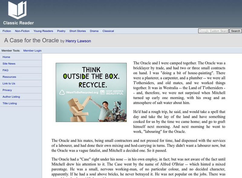 Read the short story "A Case for the Oracle" by Henry Lawson.