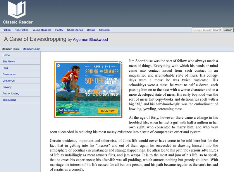 Classic Reader: A Case of Eavesdropping by Algernon Blackwood