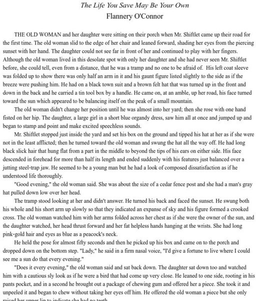 The complete text of the short story "The Life You Save May Be Your Own" by Flannery O'Connor.