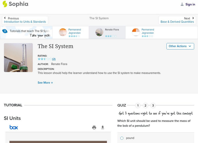 This lesson should help the learner understand how to use the SI system to make measurements. It is 3 of 5 in the series titled "The SI System."