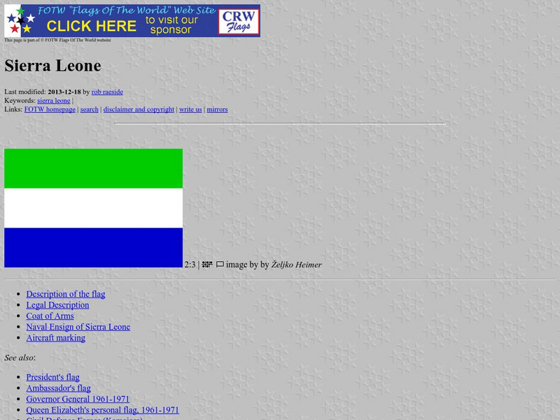 Flags of the World offers a large flag of Sierra Leone with a description of the flag and some other colonial flags.