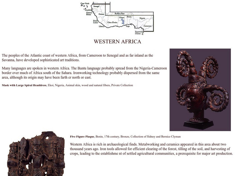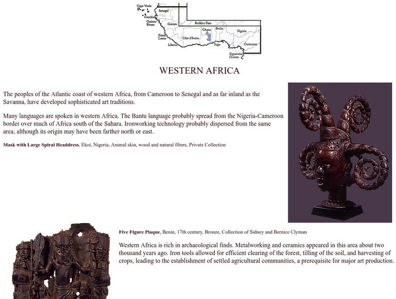 A simple explanation of the Western Africa region of Africa, with information on the cultural history and examples of artwork.