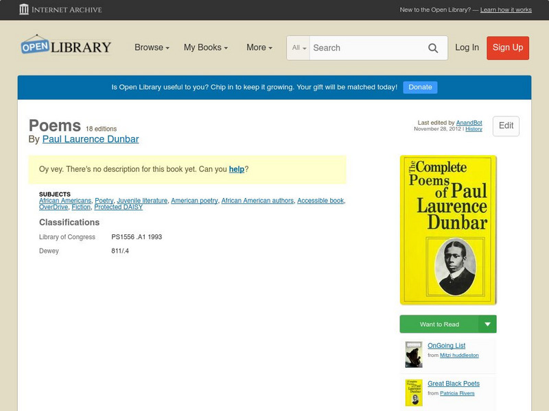 This resource provides information about Paul Laurence Dunbar.