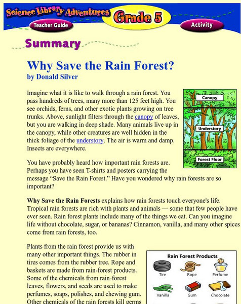 Here you can find a general overview of the importance of the rain forest, and why it needs "saving." A student activity and teacher's lesson plan is also included.