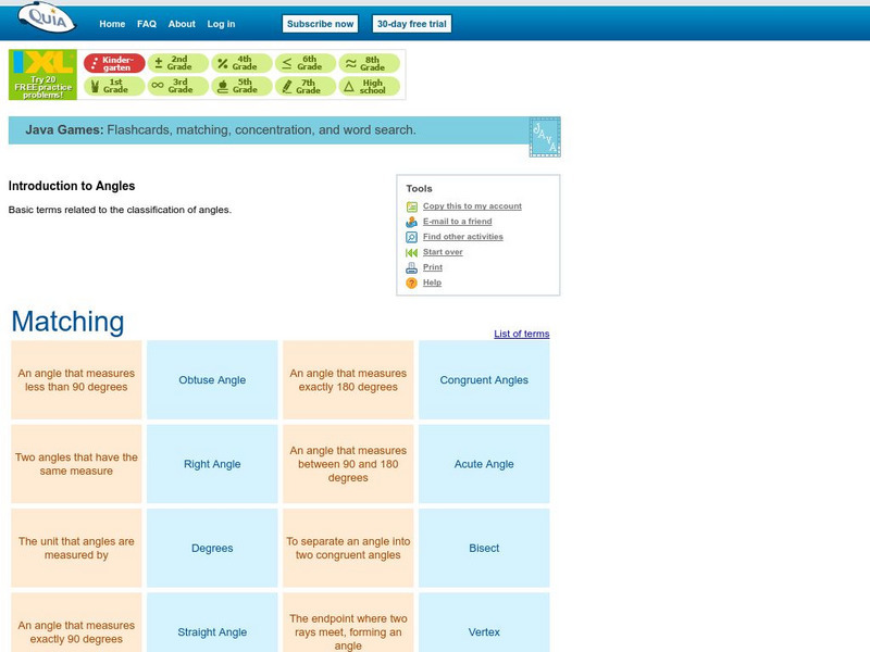Use this website to practice angle definitions using a matching game format.