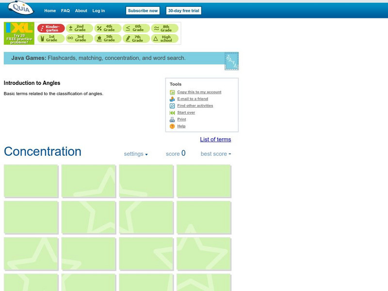 Use this website to practice angle definitions using a concentration game format.