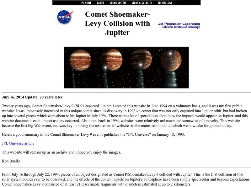 This site from NASA provides information on the Shoemaker-Levy collision which, even though the impact of Comet Shoemaker-Levy 9 with Jupiter happened in 1994, it continues to make news. Read the latest information related to the...
