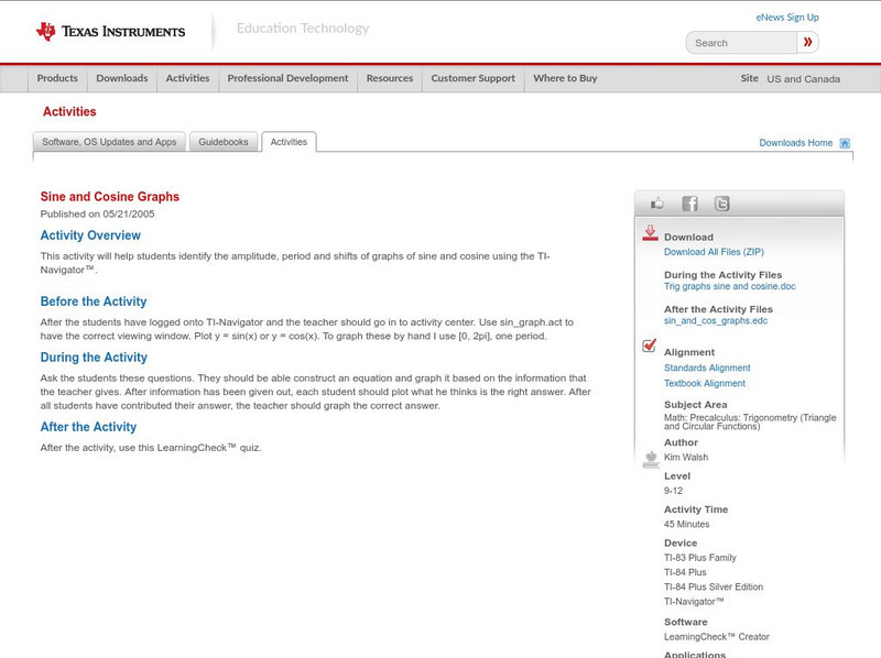 This activity will help students identify the amplitude, period and shifts of graphs of sine and cosine using the TI-Navigator.
