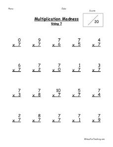 In this multiplication facts worksheet, 4th graders enhance their math skills by solving the multiplication equations. Students solve 20 equations.