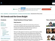 For this online interactive literature worksheet, students respond to 8 short answer and essay questions about Sir Gawain and the Green Knight. Students may check some of their answers online.
