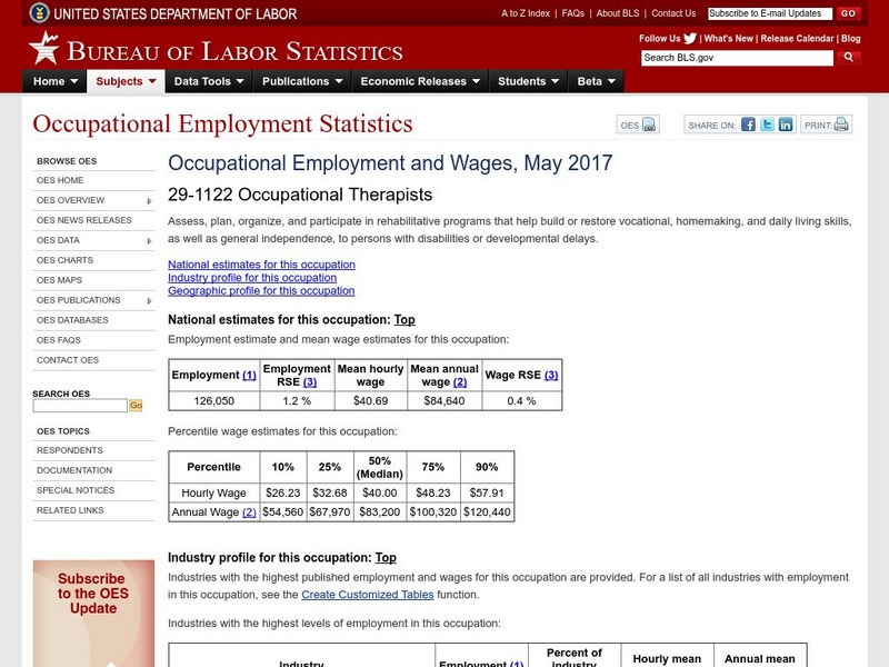 This Bureau of Labor Statistics site tells what occupational therapists do and the types of people they work with. Describes their working conditions, job opportunities and salary. Tells qualifications needed to become an occupational...
