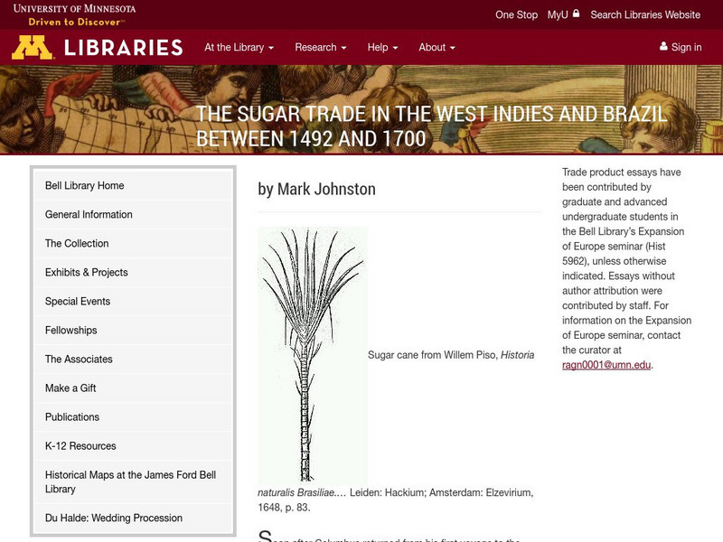 University of Minnesota: Sugar Trade in the West Indies and Brazil