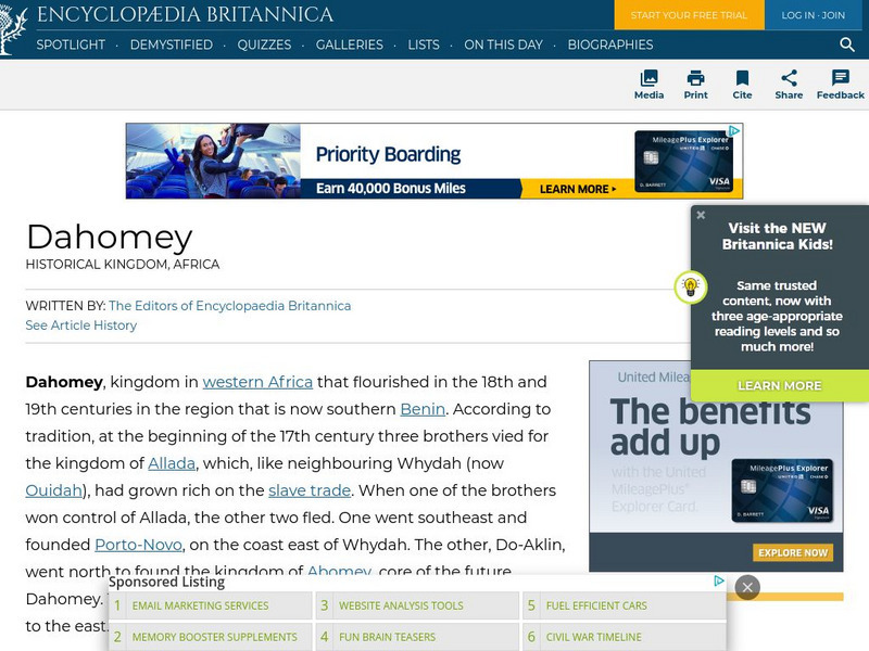 Extremely brief Britannica.com article about Dahomey, a kingdom in western Africa the flourished because of the slave trade.