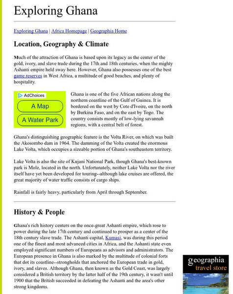InterKnowledge Corp provides basic facts about the location, geography, climate, history and culture of the country Ghana.