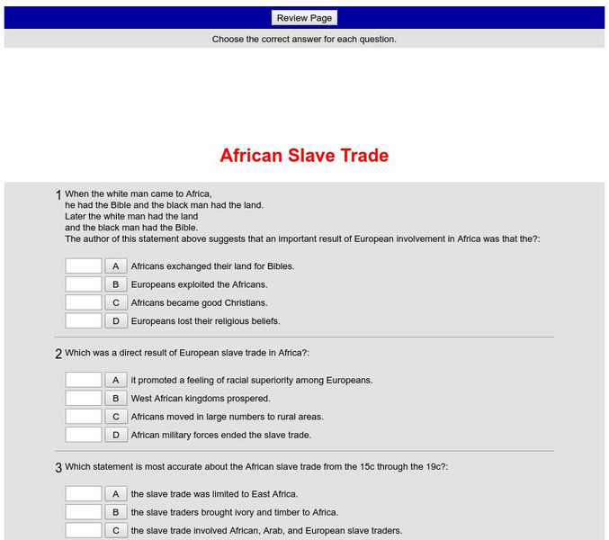 Historyteacher.net: Global Studies: African Slave Trade Quiz