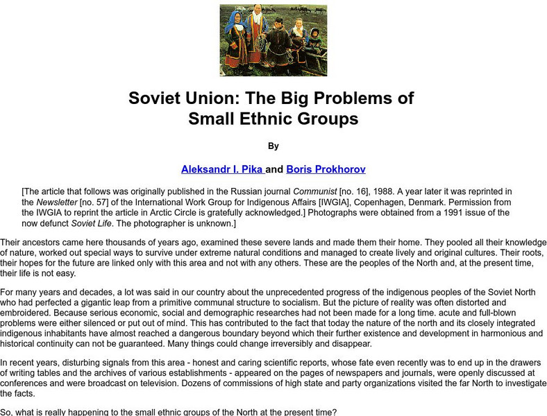 An interesting article on the special problems of small ethnic groups in the former Soviet Union. Ethnic groups in the northern part of Russia are focused on.