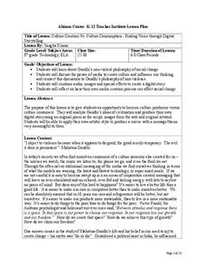 Ninth graders explore the power of media in culture and Gandhi's philosophy of nonviolence. In this nonviolence and media lesson, 9th graders analyze Gandhi's nonviolent methods for social change and discuss the media's power to create...