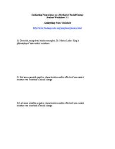 During a lesson on Dr. Martin Luther King, Jr, the Civil Rights Movement, and/or nonviolent resistance, students can gather their thoughts in this activity. The questions cover Dr. King's philosophy of nonviolence, and two opinion...