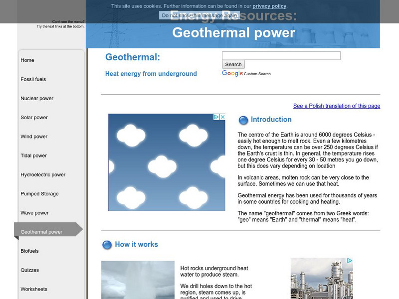 This site was put together by a science teacher and provides a very nice introduction to how geothermal powered energy resources may be used. Discusses advantages and disadvantages.