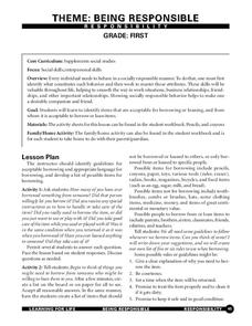 First graders focus on the social skill of responsibility. They observe different social situations in order to acquire behaviors as they are modeled by others. Students identify items that are acceptable for borrowing or...