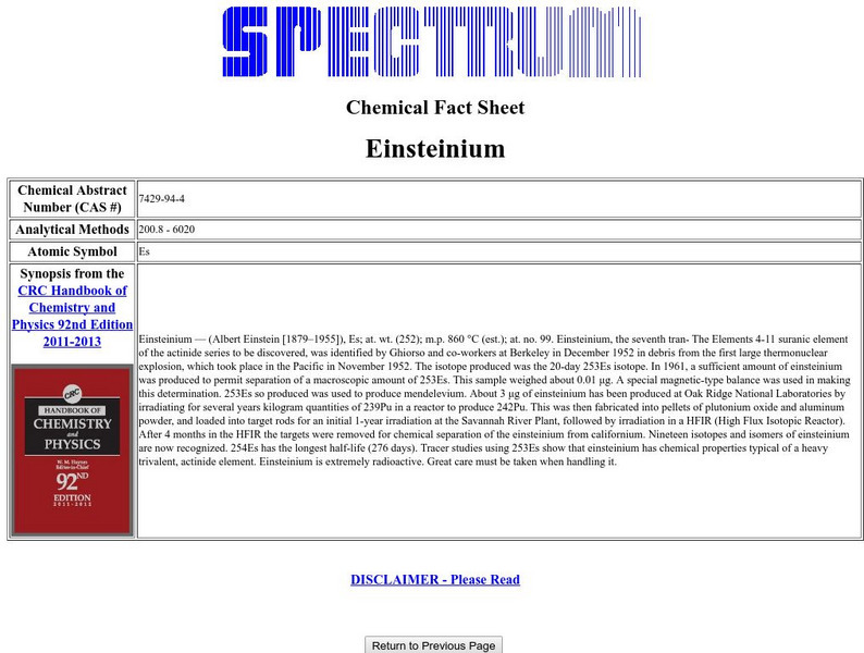 Florida Spectrum: Chemical Fact Sheet: Einsteinium