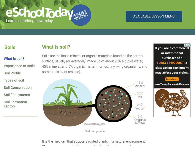 All aspects of soil and its components are reviewed here. Your class will learn how certain organisms help the quality of the earth and support growth. Different ways to enhance the chemical make-up are described and will be...