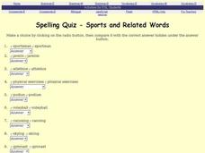 In this spelling instructional activity, students choose the word that is spelled correctly having to do with different sports. Students complete 14 problems.