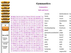 For this physical fitness worksheet, students find the words that are used to describe gymnastics and the answers are found at the bottom of the page.