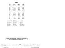 In this sports puzzle, students identify the names of sports, such as soccer, football, skating and fencing. A list of approximately 18 words is provided for students to locate.