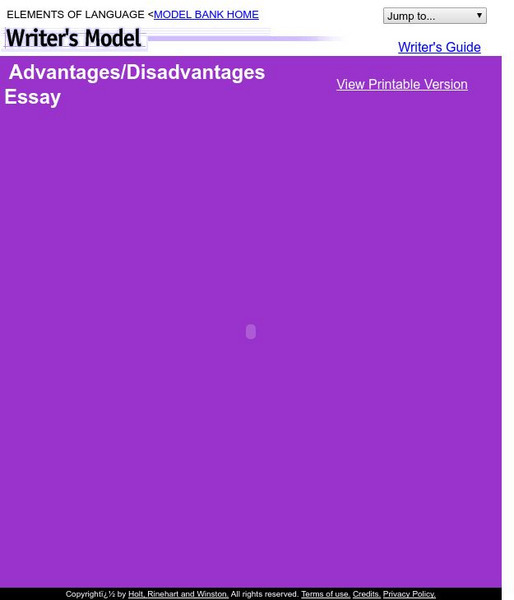 Holt, Rinehart and Winston: Writer's Model: Advantages/disadvantages Essay