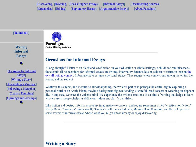 Paradigm Online Writing Assistant: Occasions for Informal Essays