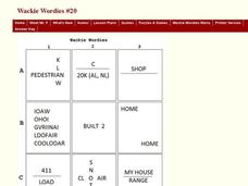 In this word puzzle worksheet, students solve twelve wackie word puzzles. Answers are available by clicking on the "click here for answers" button on the bottom of the page.