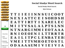 In this social studies word search, students identify twenty five words related to the Constitution in a word search. Examples include: preside, Anti-Federalist, and senate.