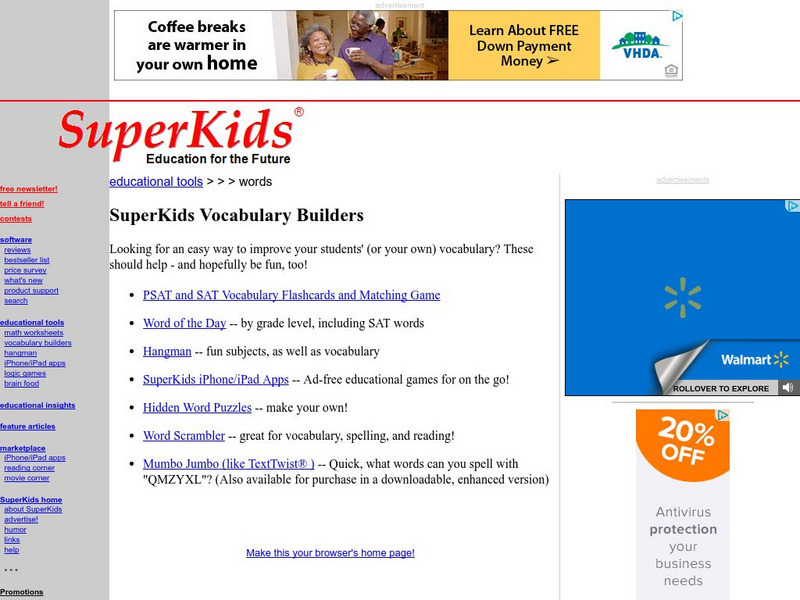 This site includes many games and puzzles ranging from word games to logic problems to riddles. These puzzles can be completed on line and offer interactive hints and solutions.